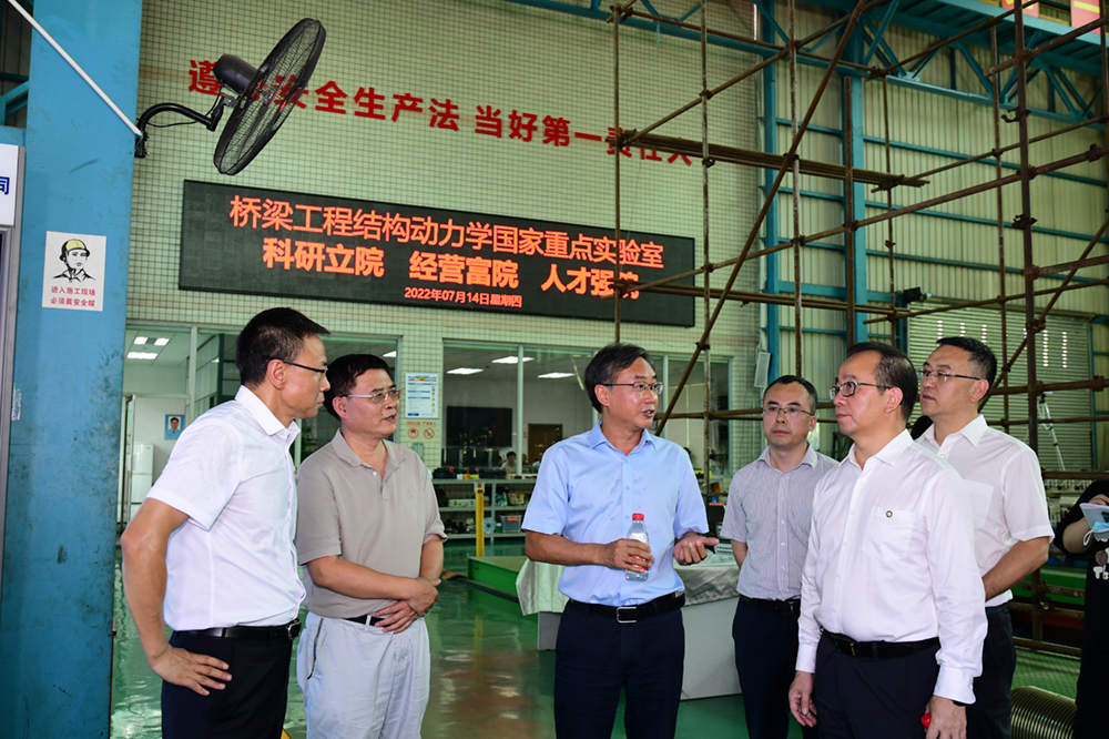 7月14日下午,重慶市南岸區(qū)委書記許洪斌帶隊(duì)調(diào)研招商交科,參觀了橋梁工程結(jié)構(gòu)動(dòng)力學(xué)國家重點(diǎn)實(shí)驗(yàn)室和公路隧道國家工程研究中心,并出席了調(diào)研座談會(huì),與招商交科黨委書記、董事長劉偉,黨委副書記、總經(jīng)理?xiàng)顕?