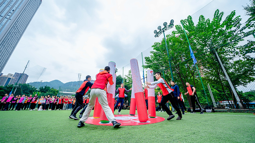 本次運動會共設(shè)置科技創(chuàng)新聚合力—百發(fā)百中、技術(shù)領(lǐng)先創(chuàng)佳績—爭分奪秒、交通強國守初心—火炬?zhèn)鬟f、百年黨史繼前行—團隊車輪、共繪藍圖新征程五個項目。賽場上,掌聲、笑聲、助威聲此起彼伏,處處洋溢著全員參與、團結(jié)協(xié)作、健康快樂的體育精神,精彩紛呈的競技場面不斷上演,把運動會一次又一次推向高潮。