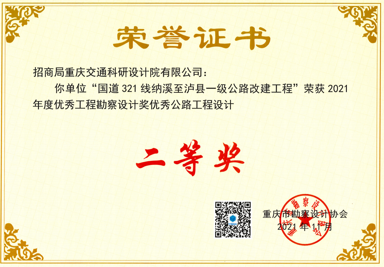 招商交科榮獲6項2021年度重慶市勘察設計協(xié)會優(yōu)秀設計獎