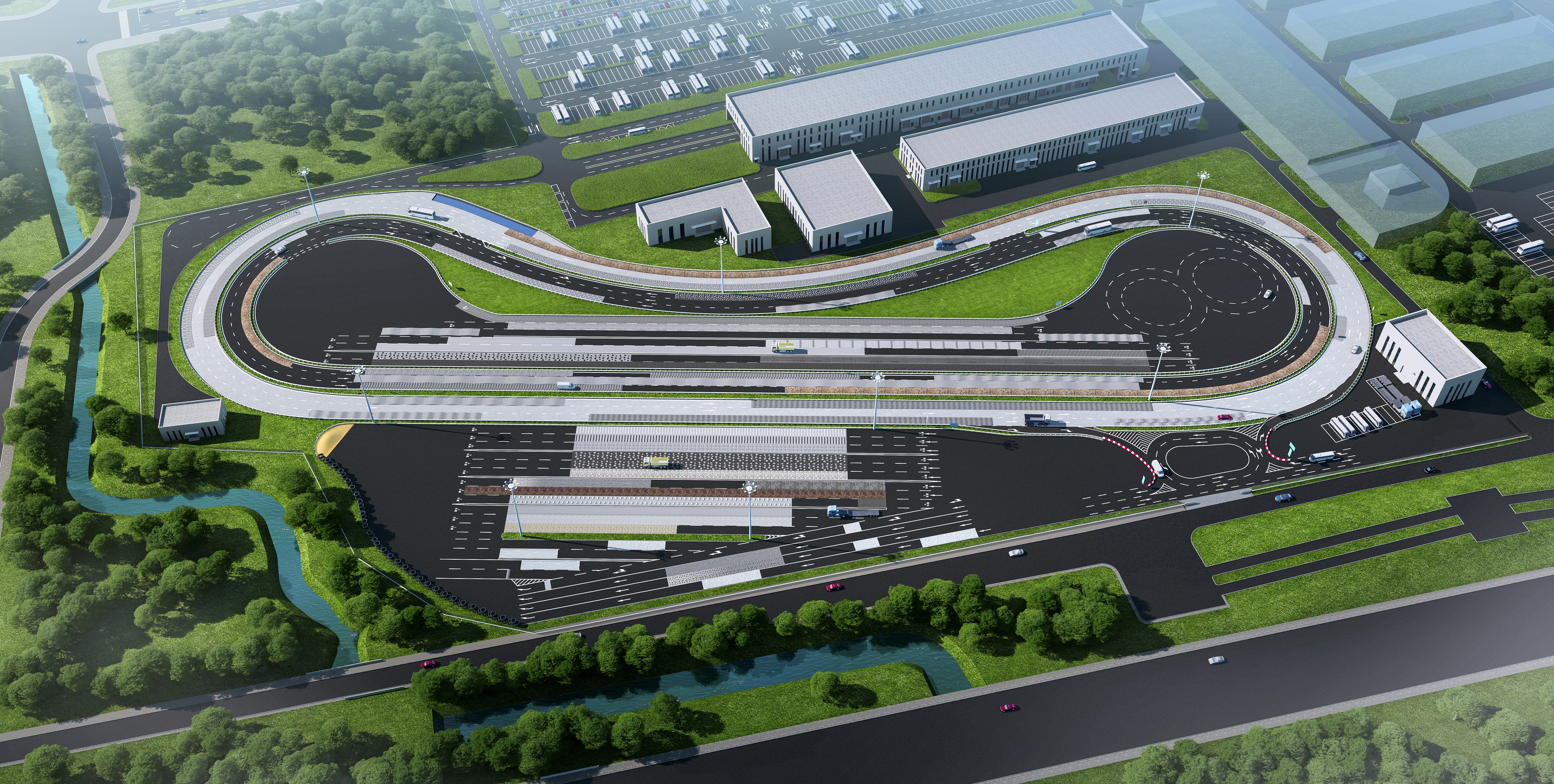 車檢院二期效果圖(鳥瞰圖) 新能源智能網(wǎng)聯(lián)汽車及智慧交通科技創(chuàng)新基地位于重慶市高新技術(shù)產(chǎn)業(yè)開發(fā)區(qū)金鳳電子信息產(chǎn)業(yè)園,總占地總面積16.76萬㎡,其中試驗道路占地7.89萬㎡,包括氣囊誤作用試驗道路、NVH評價試驗道路、強化耐久試驗道路等3個區(qū)域,涉及比利時路、維也納路、坑洼路、扭曲路、搓板路、波形路、顛簸路、凸塊路、魚鱗坑、卵石路等50多種特種道路。項目建成后,將用于汽車和摩托車新產(chǎn)品研究開發(fā)試驗、標(biāo)準驗證及可靠性試驗、相關(guān)法規(guī)試驗等。