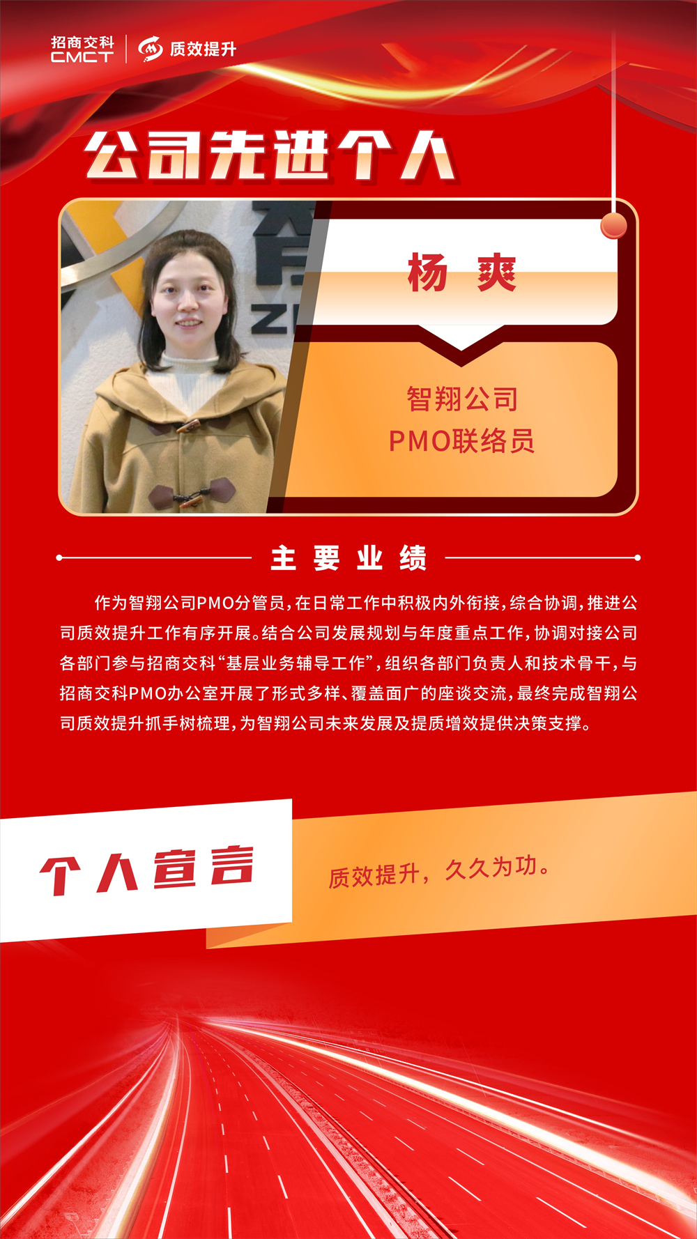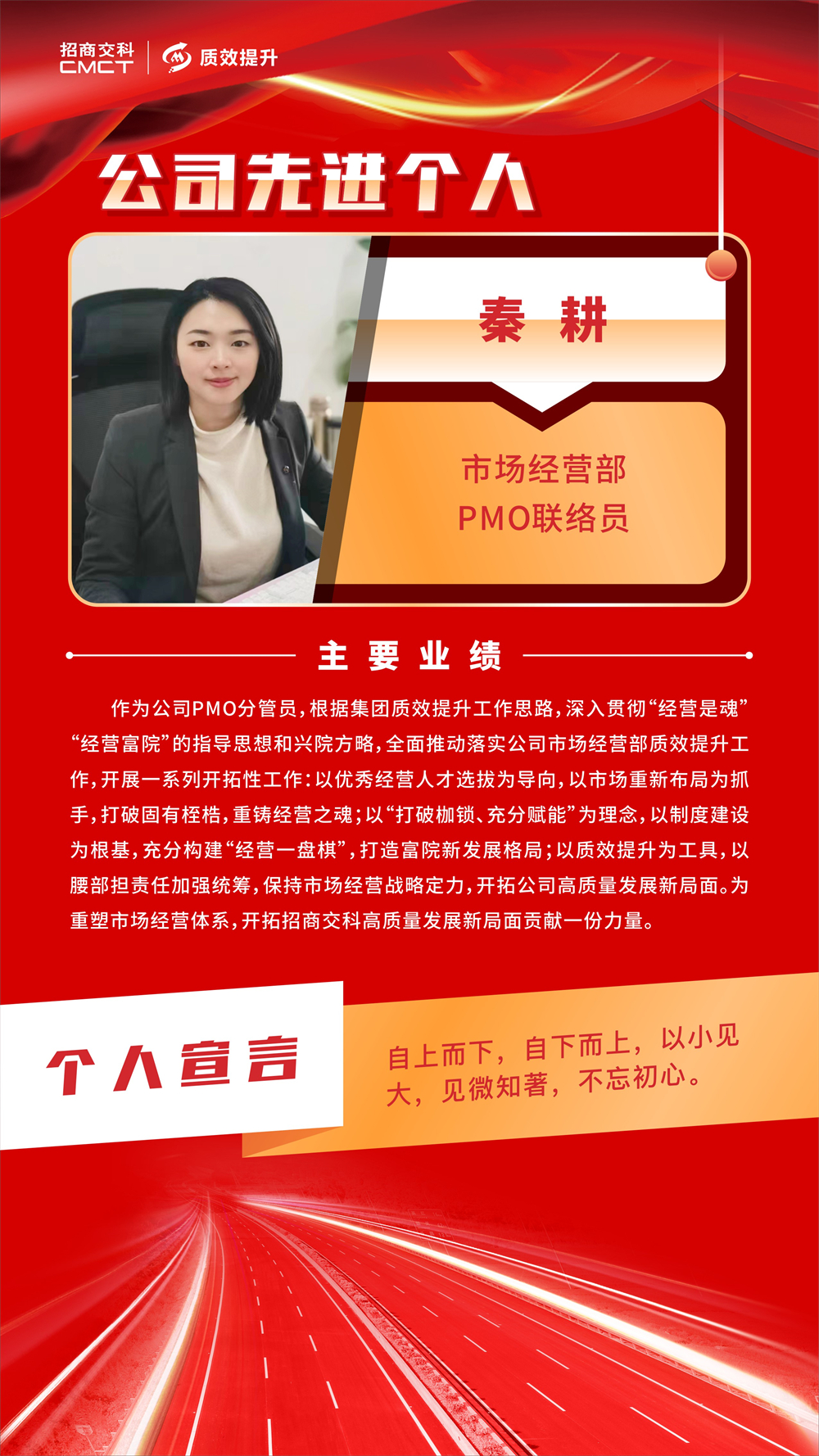 ? 各部門和單位要以先進單位、先進個人為榜樣,堅定不移推動質效提升工作走深走實,助力招商交科高質量發(fā)展。
