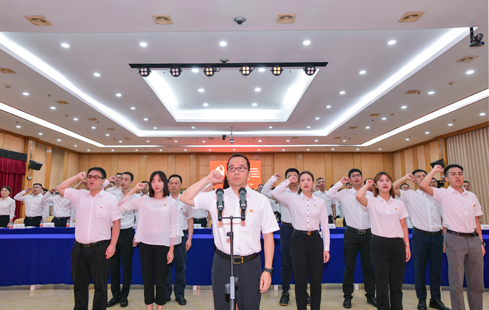 招商交科黨委書記、董事長(zhǎng)劉偉帶領(lǐng)新黨員宣誓,與會(huì)的全體黨員共同重溫入黨誓詞。