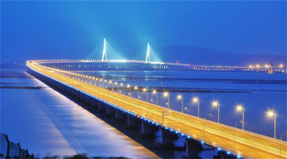 廈漳跨海大橋北汊主橋為主跨780米雙塔雙索面鋼箱梁斜拉橋,在同類橋梁中居全國第七、世界第十二。北汊南引橋全長3962.4米,為十二聯(lián)PC連續(xù)箱梁,分別采用短線法節(jié)段預(yù)制拼裝和移動模架施工。工程建設(shè)條件復雜,是我國集風浪潮及地質(zhì)條件之最的跨海大橋之一。大橋設(shè)計和研究成果達到了國內(nèi)領(lǐng)先水平,開展了全世界首例大跨徑斜拉橋全橋地震模擬試驗,首次提出了滑動限位式鉛芯隔震橡膠支座及混合隔震體系。