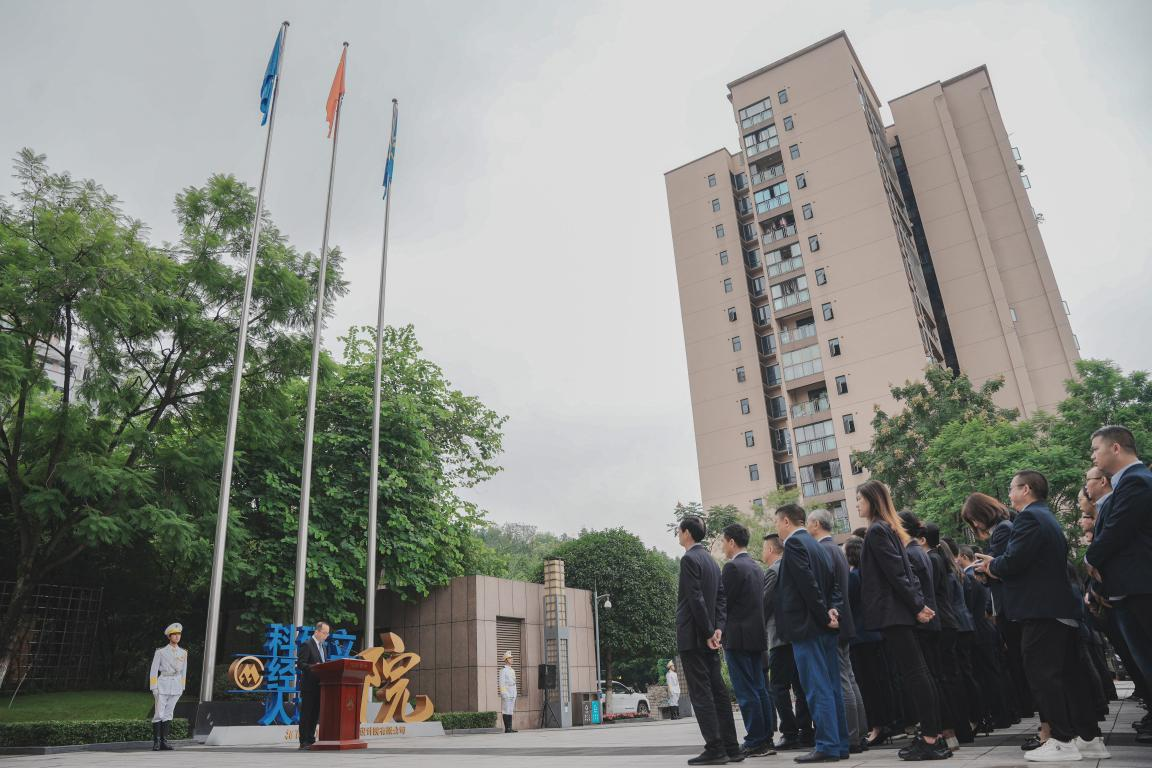 上午9時(shí)零5分,招商交科在交科院廣場(chǎng)舉行了升旗儀式。招商交科在家領(lǐng)導(dǎo)班子,各部門(mén)及單位員工代表,部分在渝招商系單位員工代表300余人參加儀式。