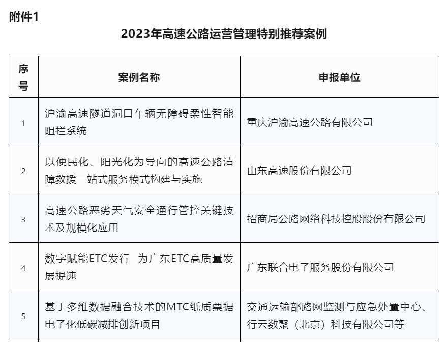 招商交科研發(fā)的國際首創(chuàng)專利技術榮居高速公路運營管理特別推薦案例榜首