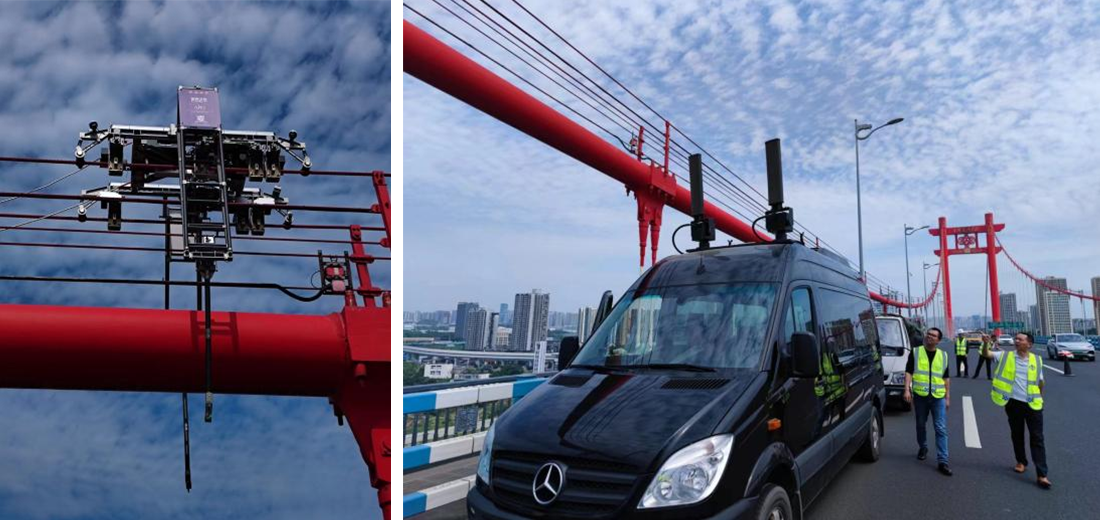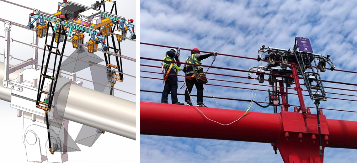 (圖為招商交科研發(fā)的主纜檢測機(jī)器人與橋檢綜合指揮車)