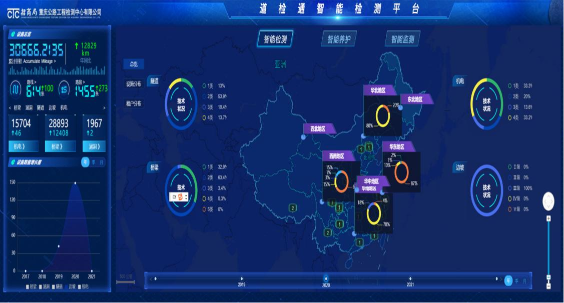 “道養(yǎng)通”以BIM與GIS技術(shù)為引擎,基于北斗、云、物聯(lián)網(wǎng)、智能傳感、大數(shù)據(jù)、人工智能等新興技術(shù),涵蓋數(shù)字路產(chǎn)、日常養(yǎng)護(hù)、養(yǎng)護(hù)工程、養(yǎng)護(hù)計劃、養(yǎng)護(hù)物資管理、養(yǎng)護(hù)決策等7大應(yīng)用板塊,包括數(shù)據(jù)中心可視化客戶端、Web管理終端、移動APP三大應(yīng)用終端,打通運養(yǎng)平臺與應(yīng)用系統(tǒng)、集團(tuán)管理平臺、行業(yè)監(jiān)管平臺之間的數(shù)據(jù)通信接口?!暗鲤B(yǎng)通”適用于集團(tuán)級、省級、長大橋隧公司等不同管理模式,已形成國內(nèi)業(yè)務(wù)體系最全、專業(yè)技術(shù)最強、應(yīng)用范圍最廣養(yǎng)護(hù)數(shù)字化平臺。