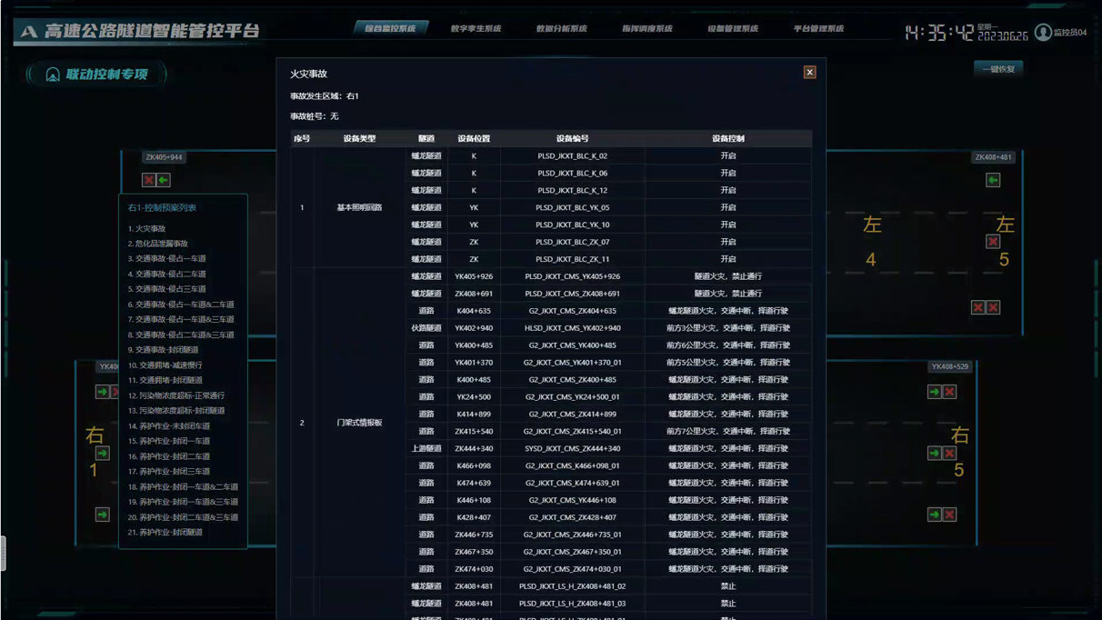 團(tuán)隊研發(fā)了公路隧道群-路段-互通協(xié)同控制技術(shù),建立了公路隧道機(jī)電設(shè)施動態(tài)協(xié)同管控方法,形成相應(yīng)的管控預(yù)案庫,按照“一隧一方案”制定了基于事件類型及隧道分區(qū)的應(yīng)急控制策略,并成功應(yīng)用到陜西秦嶺終南山隧道、江蘇太湖隧道等重點工程,實現(xiàn)了突發(fā)事件快速響應(yīng)、一鍵聯(lián)動,提高運營管理單位的突發(fā)事件處置和協(xié)同管理能力。研究成果已納入交通運輸行業(yè)標(biāo)準(zhǔn)《高速公路隧道運營突發(fā)事件應(yīng)急預(yù)案編制要求》(送審稿)。