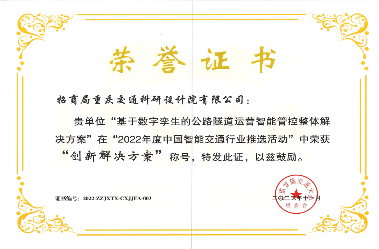 管控平臺在全國10余個省(自治區(qū)、直轄市)的200余座公路隧道得到成功應(yīng)用,以智慧化手段提升了隧道通行能力,增強(qiáng)了安全風(fēng)險識別預(yù)警、快速響應(yīng)和聯(lián)動處置水平,綜合運營成本同比降低超20%,事故發(fā)生率降低超25%,突發(fā)事件應(yīng)急處置效率提升超20%,經(jīng)濟(jì)社會效益顯著。中國公路學(xué)會組織專家對平臺進(jìn)行鑒定,評價為總體達(dá)到國際先進(jìn)水平,并榮獲等多項殊榮。