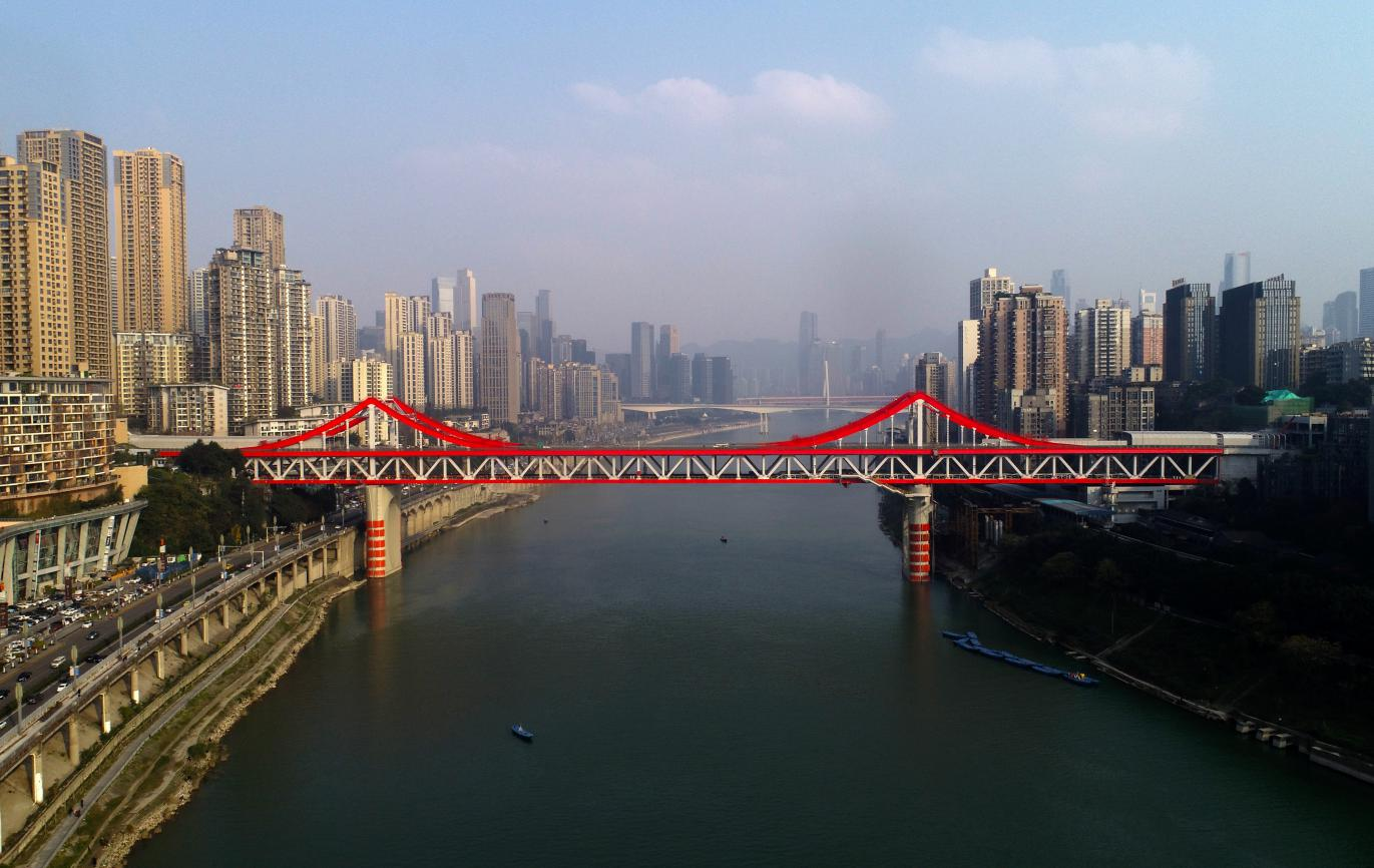 2.結構特殊,下層橋面在重慶市首次采用了特殊的浮置板式軌道道床;為了滿足軌道換乘的需要,首次在大跨徑鋼桁梁橋上設置軌道換乘站。