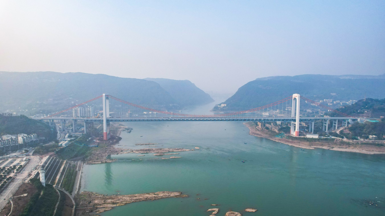 1.國內(nèi)已建成的最大跨徑公軌兩用懸索橋。